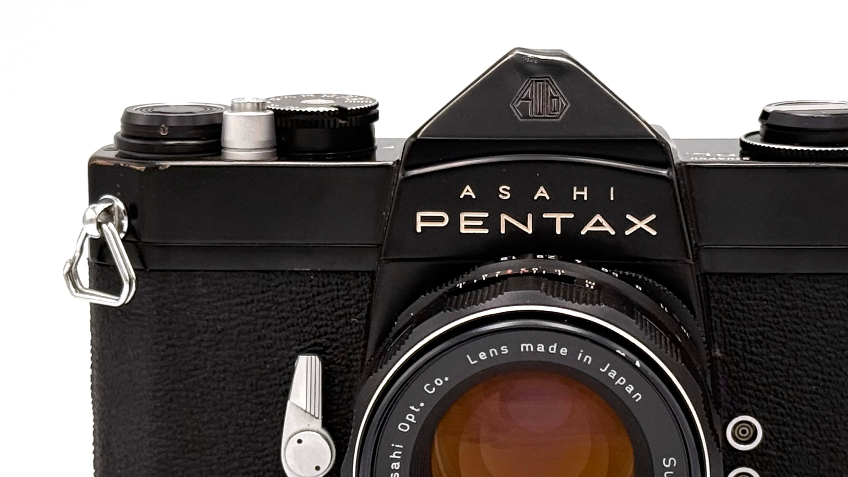 ペンタックスのM42マウント機械式一眼レフ、SLです。SPから露出計を省いたモデルで、外観も似ています。ファインダー内は余計な表示がなくすっきりしており、構図に集中できるのが利点です。レンズはスーパータクマー55mm F1.8です。あまり見かけないブラックボディの塗装は全体的にはかなり綺麗ですが、ペンタ部に凹みがあります。レンズも清掃して綺麗な状態です。