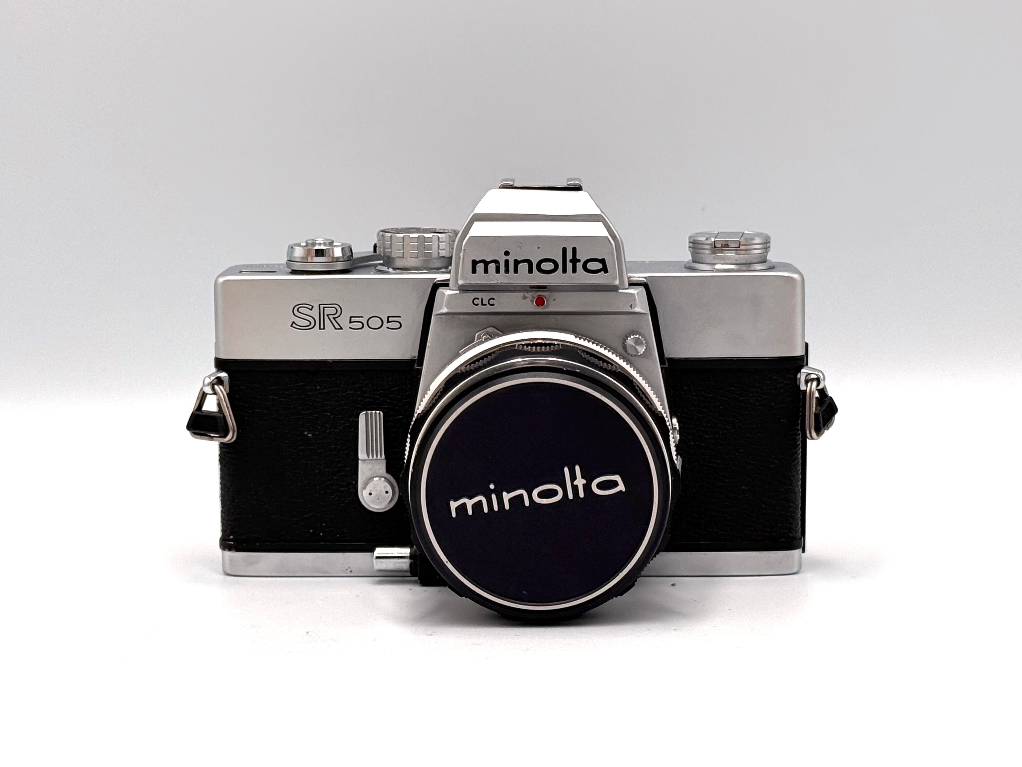 ミノルタSRシリーズの最終モデル、SR505です。ファインダー内にシャッタースピードと絞り値が表示され、操作感もよく大衆機と呼べるカメラの中で特に完成度の高いモデルです。