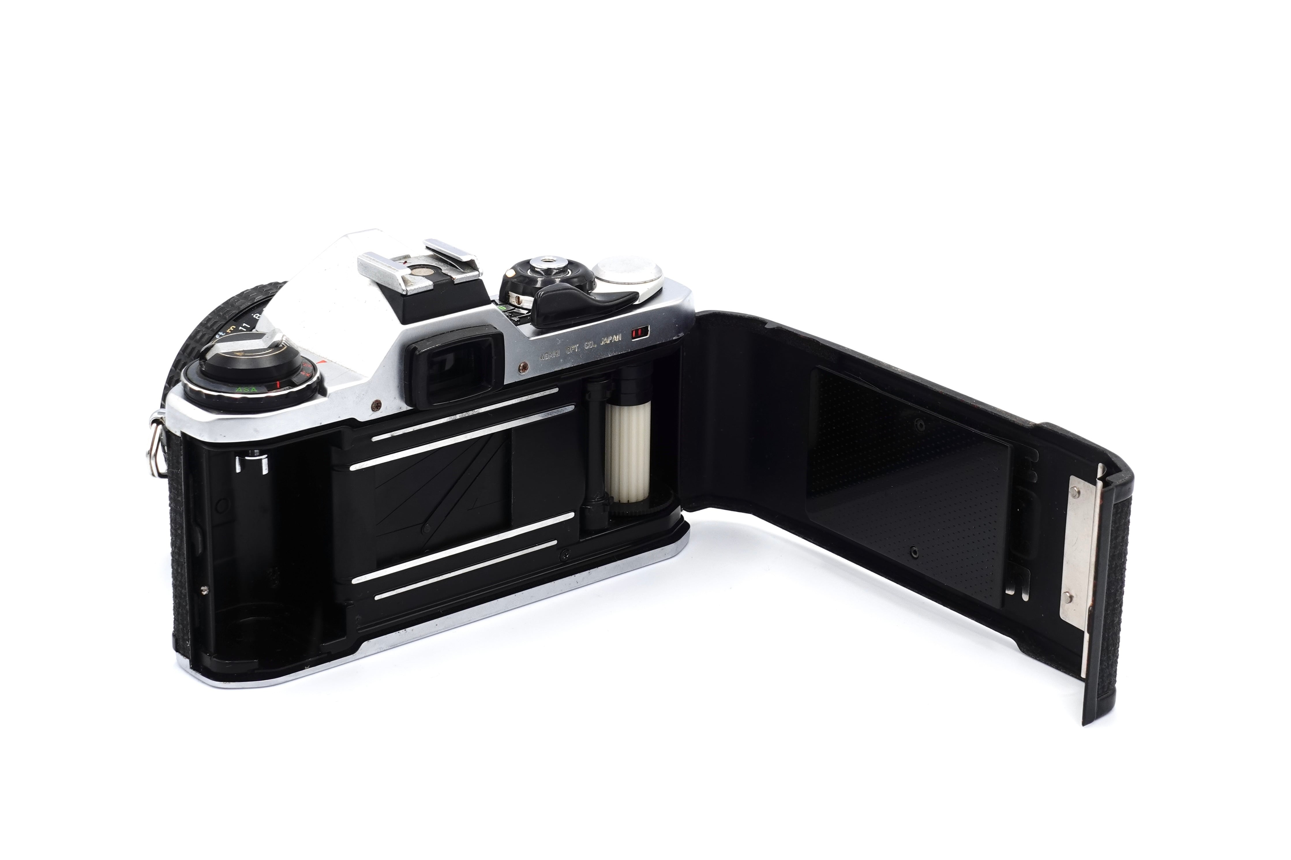 ペンタックスKマウントの電子式一眼レフカメラ、MEです。小型軽量で、絞り優先AE専用のシンプルな操作のカメラです。レンズはSMC PENTAX-M 50mm F1.7です。
