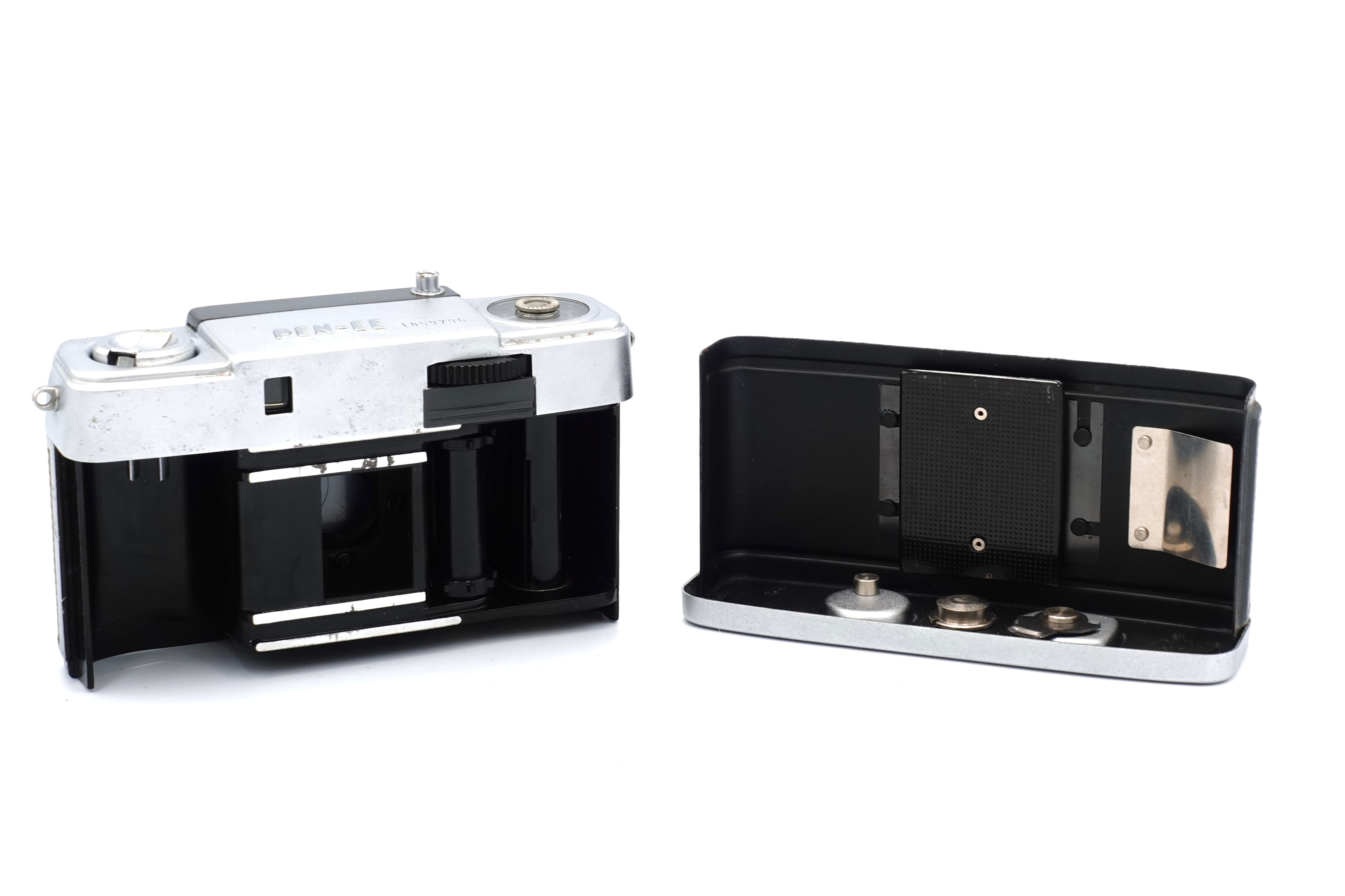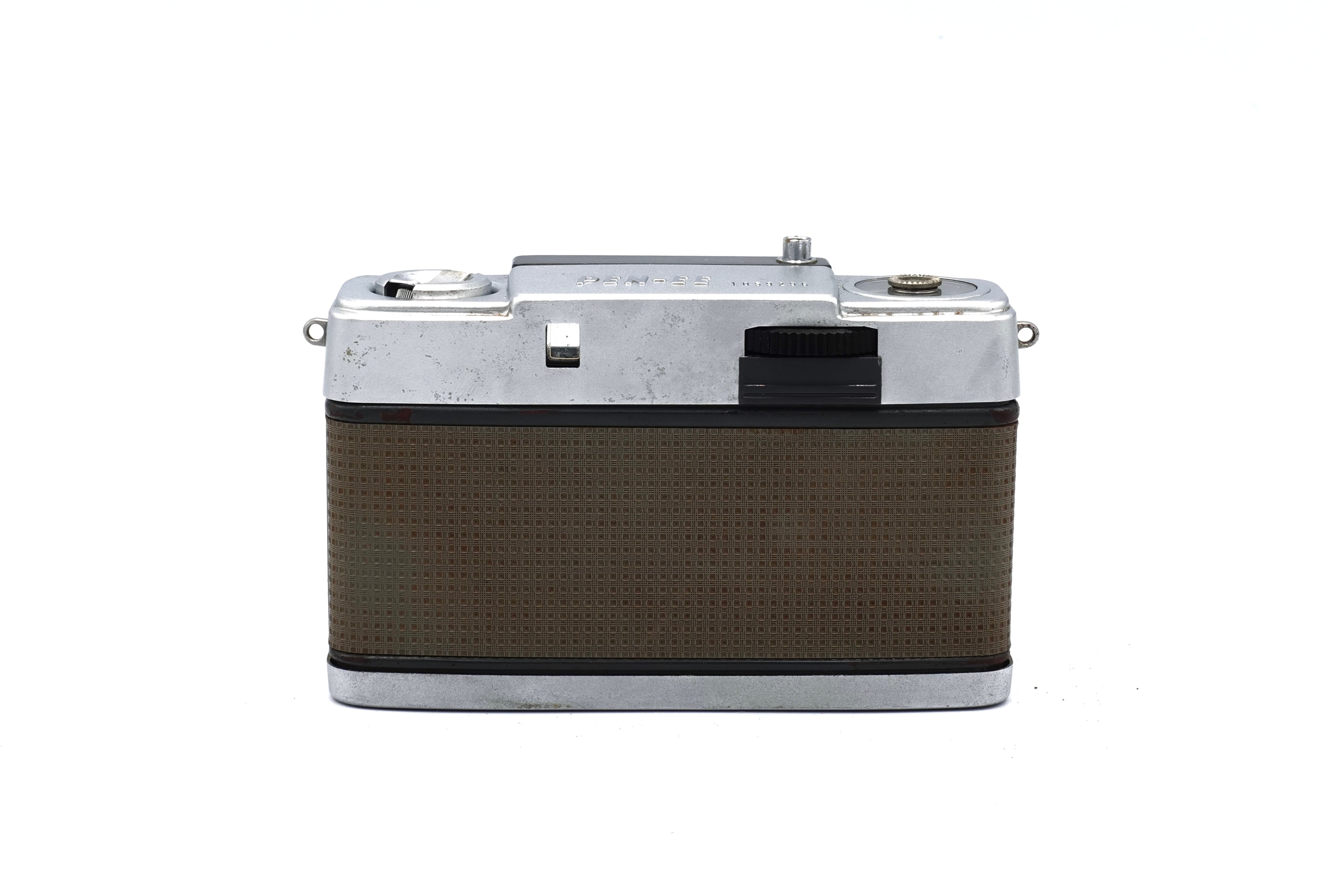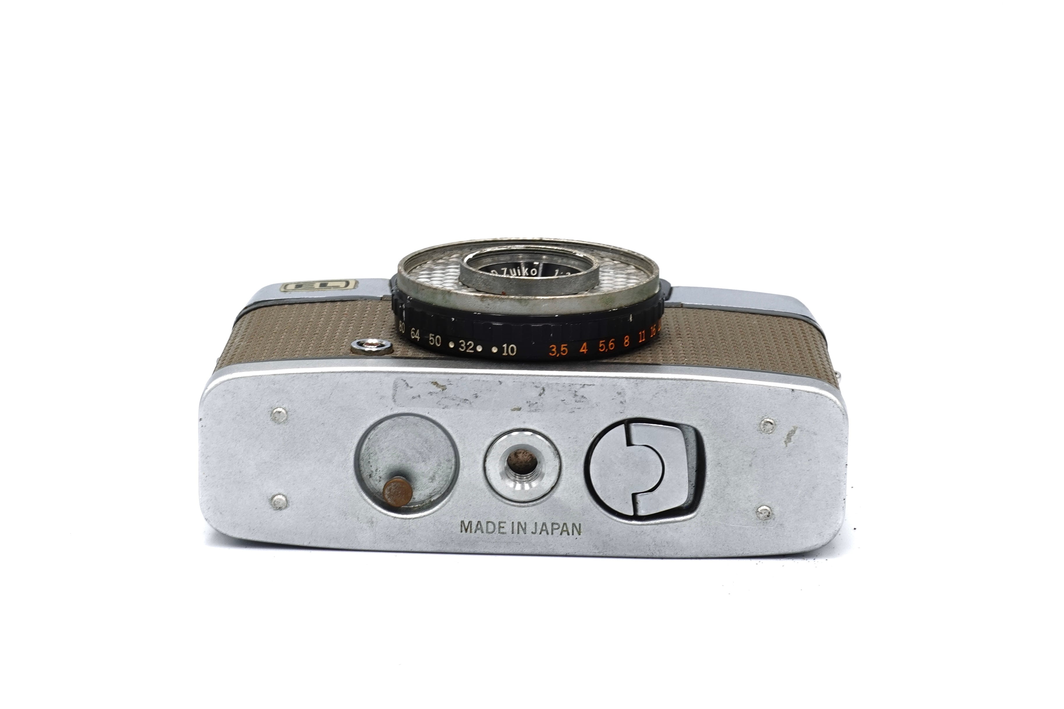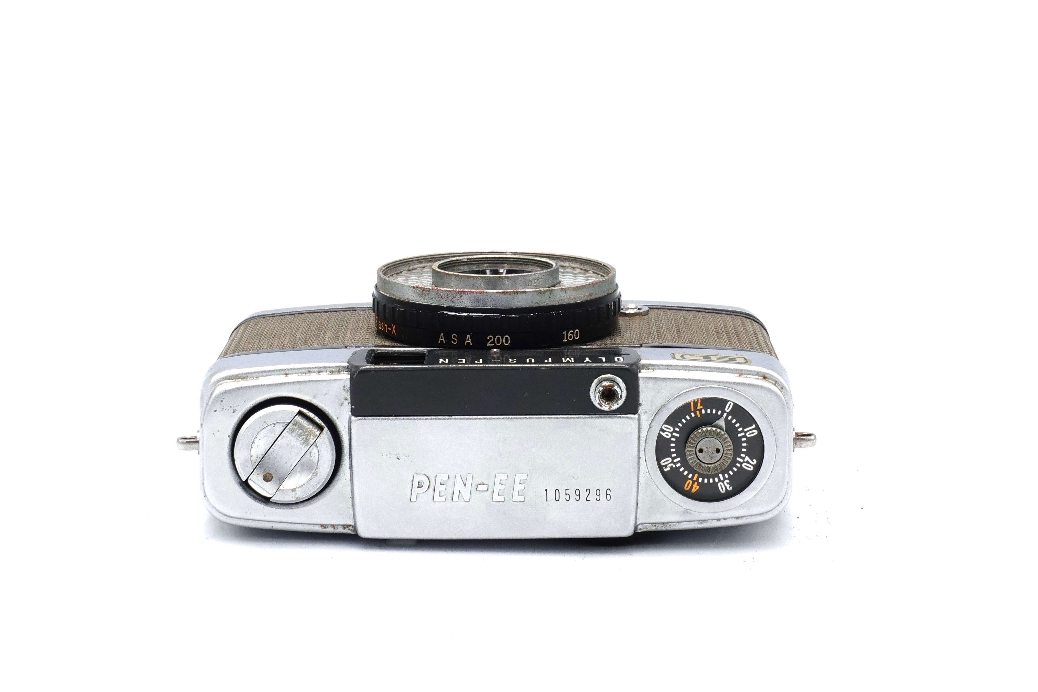 オリンパスのハーフカメラ、ペンEEシリーズの初代モデルです。ピントは固定、露出も自動なのに電池いらずのお手軽なハーフカメラです。