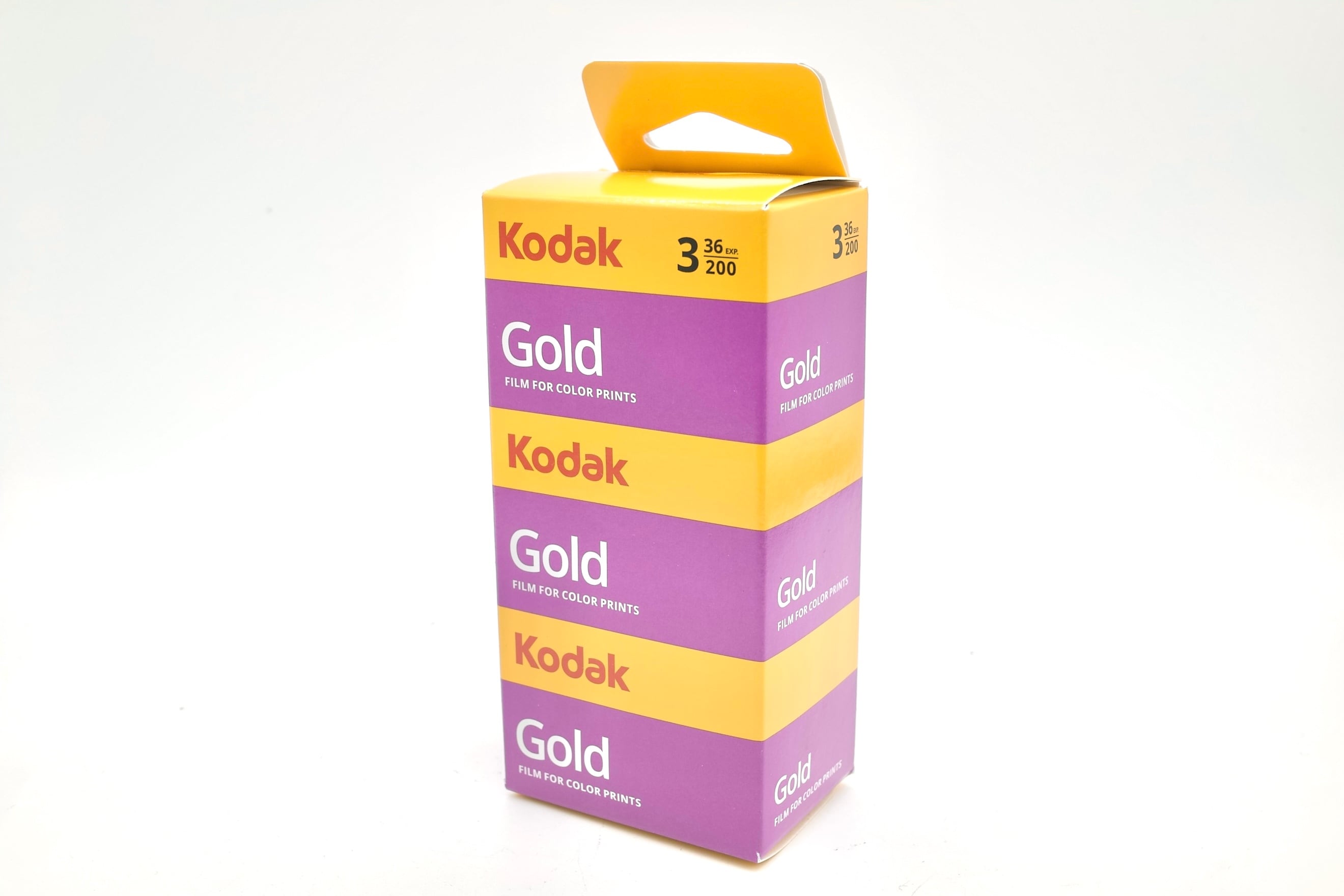 コダックの35mmカラーネガフィルム、ゴールド200の36枚撮り、3本パックです。