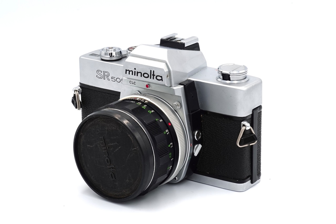 ミノルタSRシリーズの最終モデル、SR505です。ファインダー内にシャッタースピードと絞り値が表示され、操作感もよく大衆機と呼べるカメラの中で特に完成度の高いモデルです。