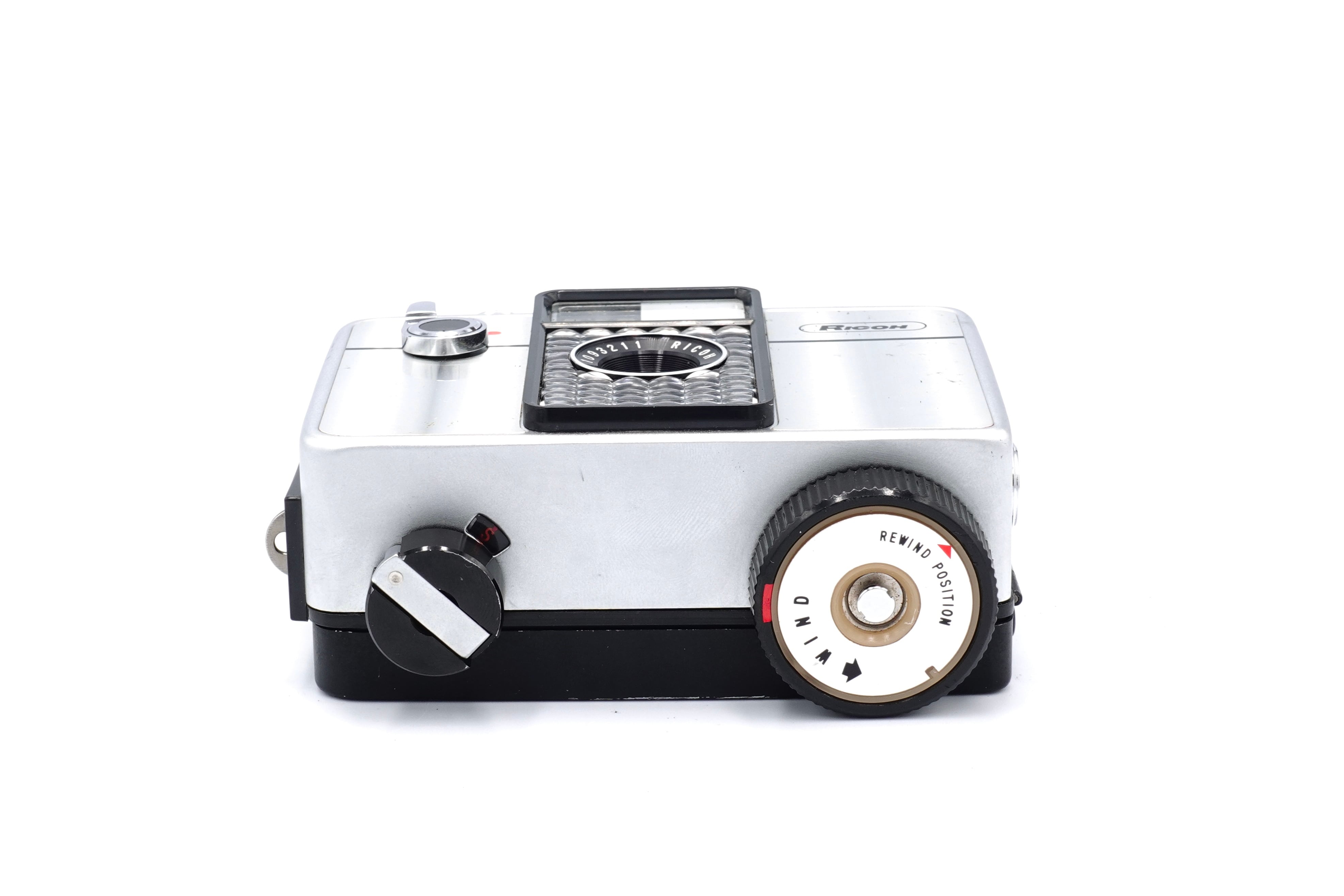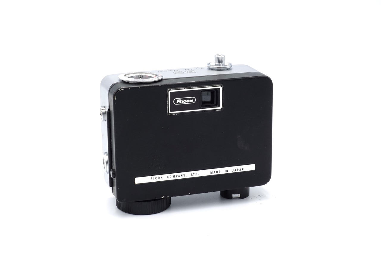 リコーのハーフサイズカメラ、オートハーフSEのシルバーです。固定焦点のレンズを搭載し、セレン露出系による自動絞りで撮影します。ゼンマイを巻いておくことで半自動巻き上げができることがオートハーフシリーズ最大の特徴です。その他、セルフタイマーやカメラ側面の三脚穴が設けられたモデルです。